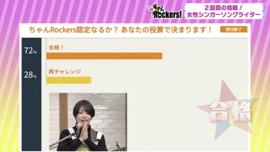 吾妻様「そこで発表者の方が披露を終えた後、”合格”か”再チャレンジ”かの投票を行い、初回は過半数(50%)以上の視聴者からの”合格”の投票をもらえると1週目勝ち抜けとなり、2回目の挑戦では70%以上の合格で2週目勝ち抜け…という内容となります。前回(1月17日)に挑戦した方が2週目の勝ち抜けに成功しました」
