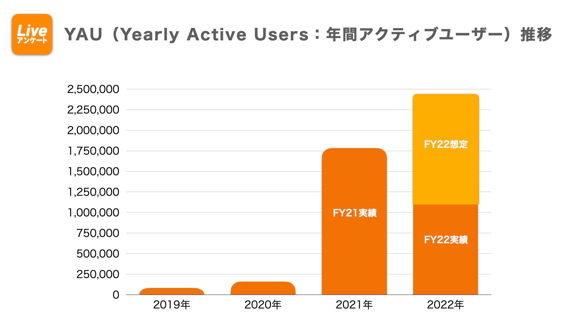 Live!アンケートのYAU(Yearly Active Users:年間利用者数)推移